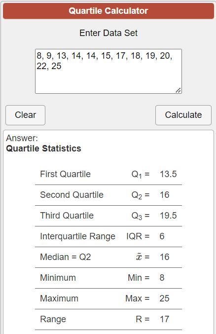 However, since the third data point is 13, which is not the middle of the bottom 25% of the data, we need to average the third and fourth data points, which are 13 and 14.