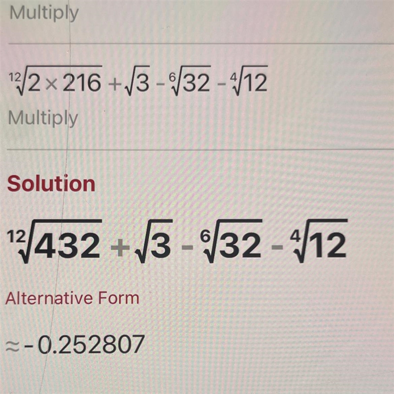 Simplify (\sqrt[4]{3} - \sqrt[2]{2}) ( \sqrt[3]{2} + \sqrt[4]{3})
