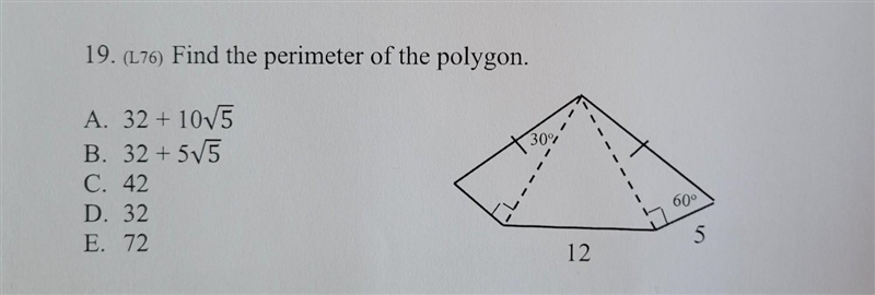 Since the triangles are congruent, we end up with 10+10+5+5+12=42