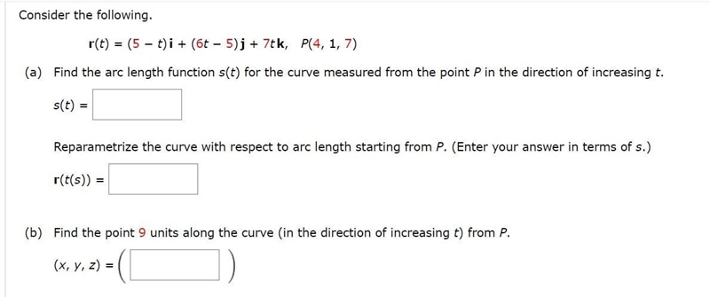 We need to find the arc length function s(t) for the curve measured from the point P in the direction of increasing t.