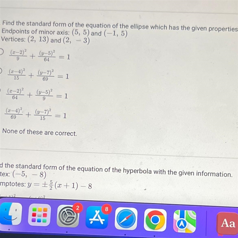 (x - 2)^2 / 64 + (y - 5)^2 / 9 = 1