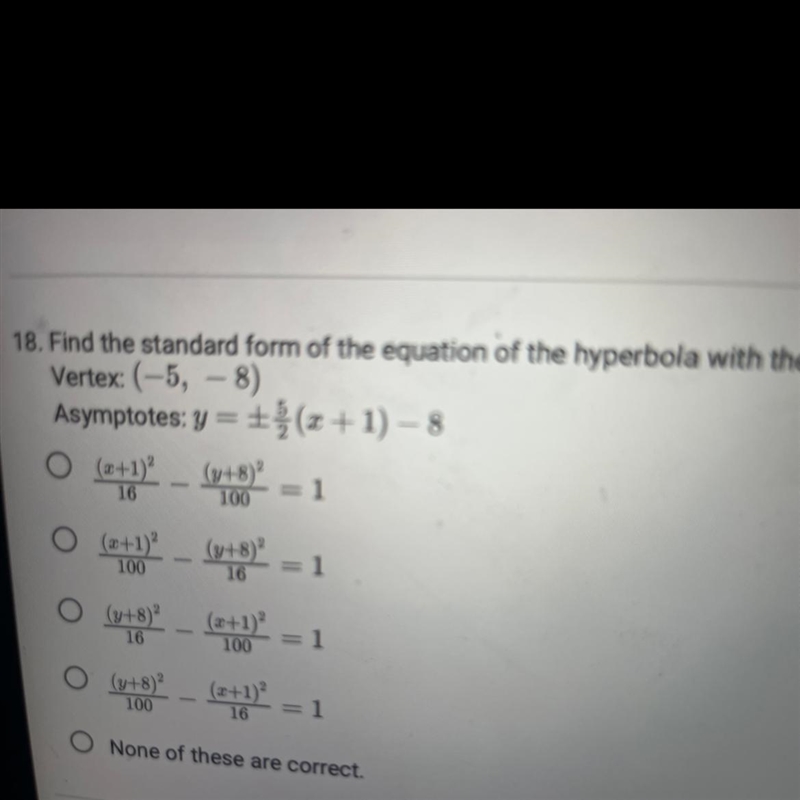 (y + 8)^2 / 4 - (x + 1)^2 / 25 = 1