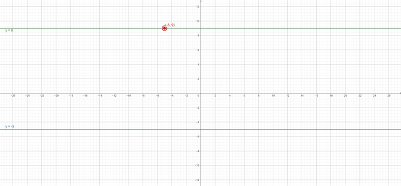 the line passes through (- 5, 9 ) with y- coordinate 9 , then