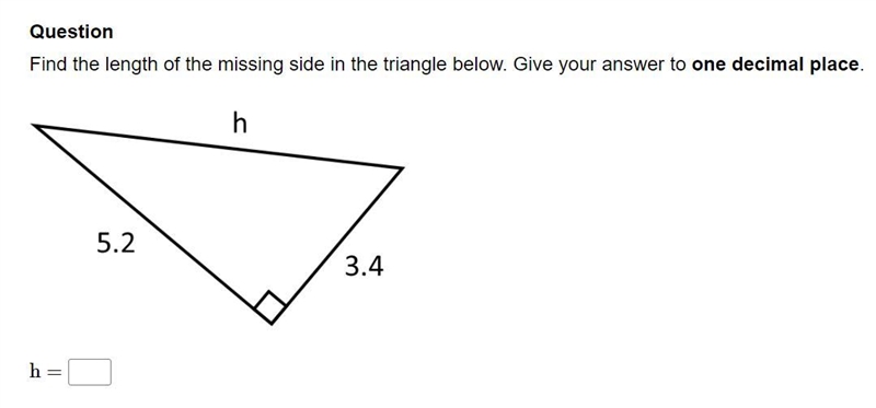 h = \sqrt{ {(5.2)}^(2) + {(3.4)}^(2) }