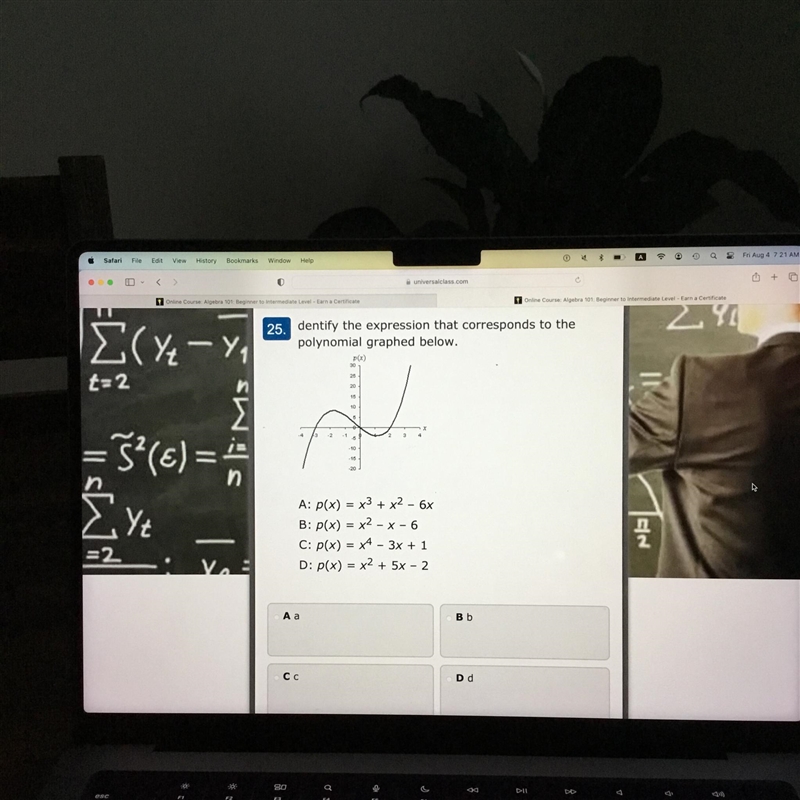 at x = -3 and 0 and +2 answer A calculates to = 0 just as the graph shows