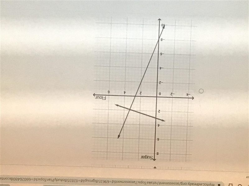 Juan spent the day baking. He used three times as much flour as sugar and used eight total cups. Which graph best depicts this problem?