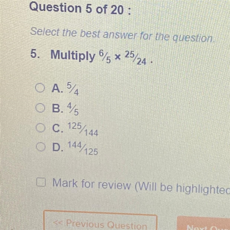 Thus, 6/5 * 25/24 = 5/4, so A. is the correct answer.
