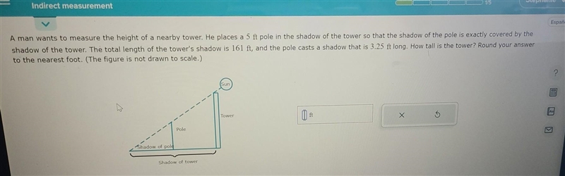 Thus, you can create a ratio between the length of the pole and the length of the shadow it produces and set it equivalent to the ratio between the height of the tower and the length of the shadow it produces since both triangles produce the same shape.
