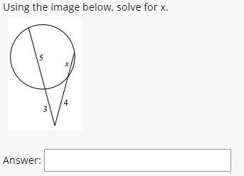 - Both segments in the circle are secants and since they're intersecting, we can find x by applying the property of intersecting secants.