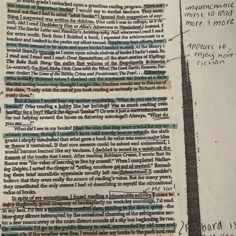 Specifically, when using the RHA method, an annotation is a small, handwritten note on either a sticky note or the margin of a book that displays your personal thoughts while reading.