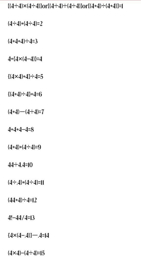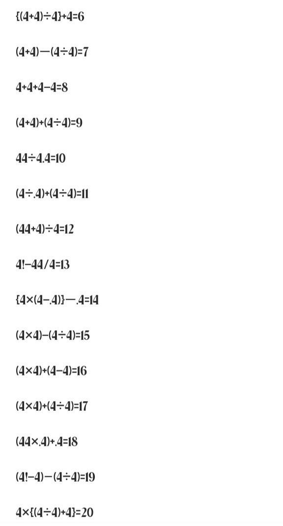 Using exactly four 4s make an equation using (pemdas) equaling 1-20