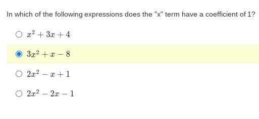3x² + x - 8 -> the coefficient of 'x' is 1.