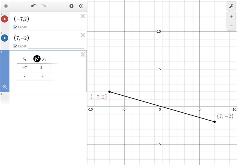 where x1= -7, x2= 7, y1= 2 and y2= -2