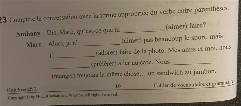 Alors, je n'aime pas beaucoup le sport, mais j'adore faire de la photo. Mes amis et moi nous préférons aller au café. Nous mangeons toujours....