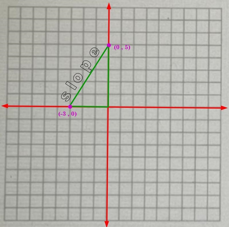 so first off, from the grid provided, we should pick a center or (0 , 0) origin for the y-axis and x-axis, now to get the slope of any straight line, we simply need two points off of it, let's use those two in the picture below.