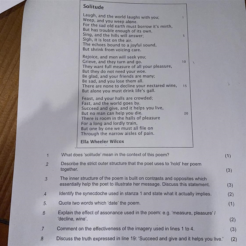 6. The assonance used in the poem creates a sense of rhythm and flow, emphasising the message that joy and sadness have different consequences.