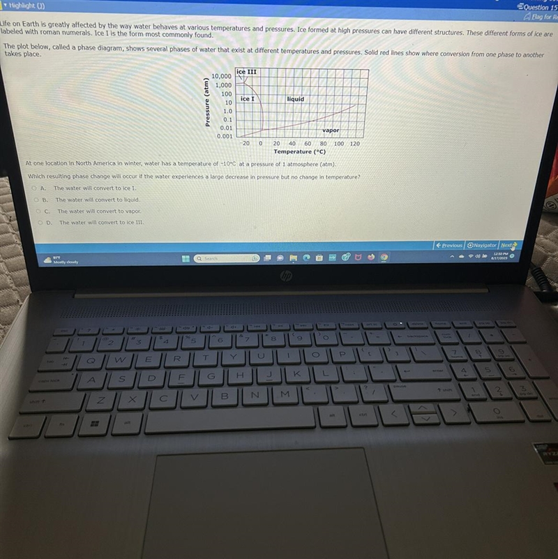 Answer: C the water will convert to vapor.