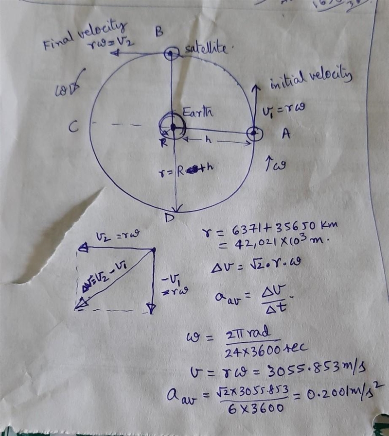 ω = angular velocity of the satellite = 2 π radians /(24 * 3600)sec