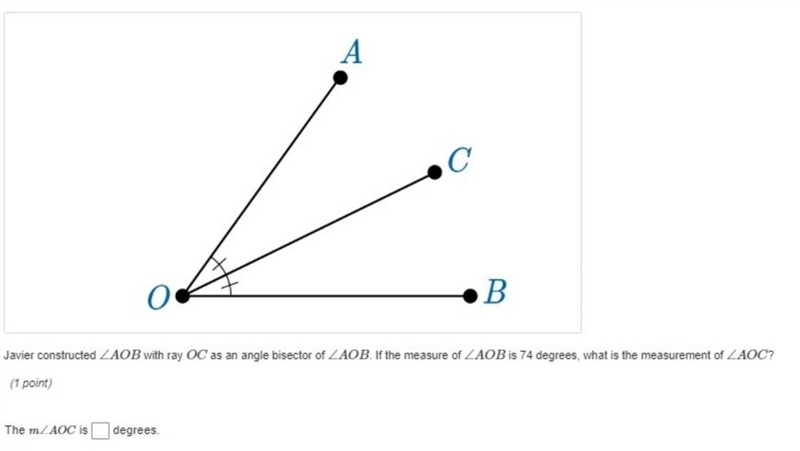 If OC is an angle bisector of ∠AOB, then both ∠AOC and ∠COB are congruent. This means that the measurement of ∠AOB divided by 2 is equal to ∠AOC and ∠COB.