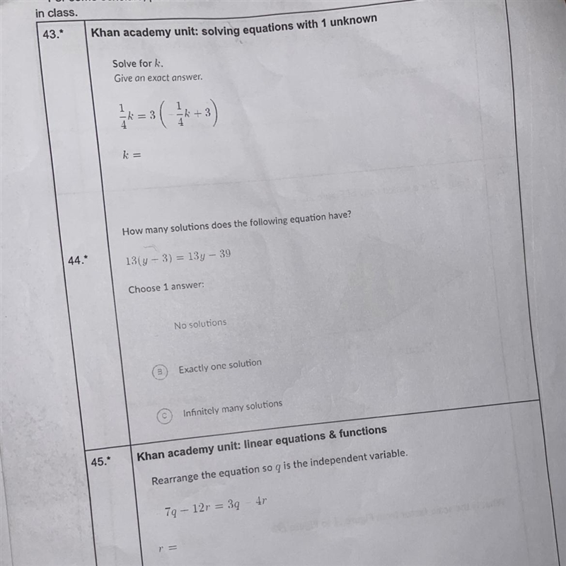 ¼ k = 3(-¼ k + 3) | do the multiplication with the bracket
