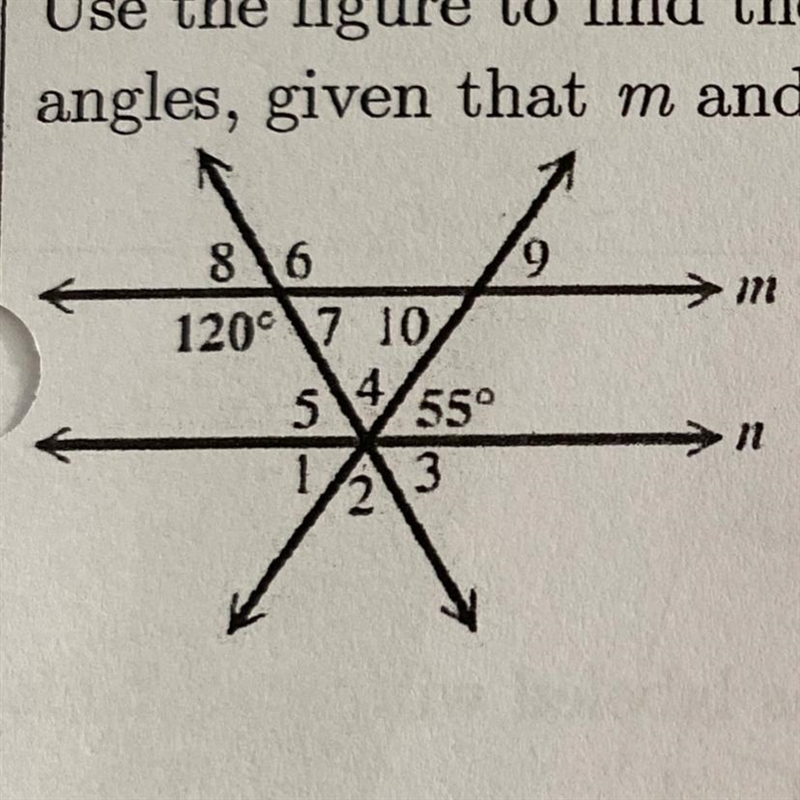 Use the figure to find the measures of the numbered angles, given m and n are parallel.