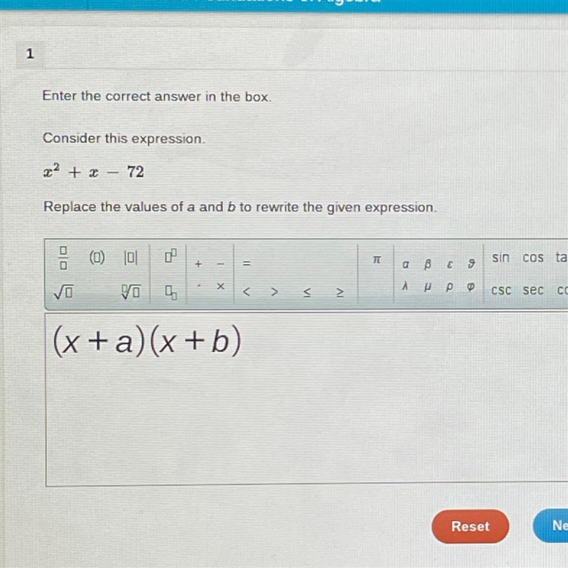 To rewrite the expression in the form (x+a)(x+b), you must factor the expression. First split the equation into two sides. Since 9 times 8 equals 72, we want to figure out how they add to equal 1 (which is the x).
