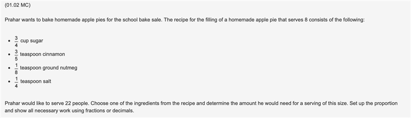 (3/4 cup sugar) / (8 people) = (x cups sugar) / (22 people)