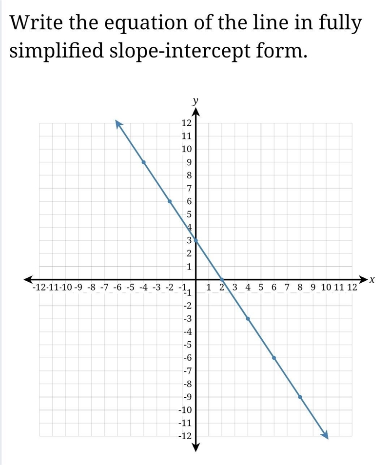 Therefore, the equation of the line in fully simplified slope-intercept form is given by: