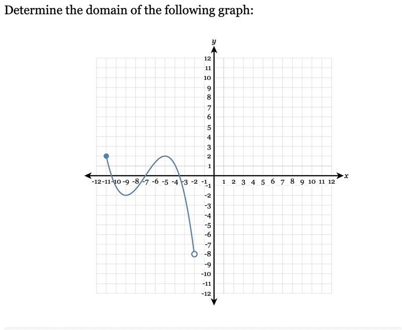 This function starts at x = -11. The filled circle means that this point is included in the domain.