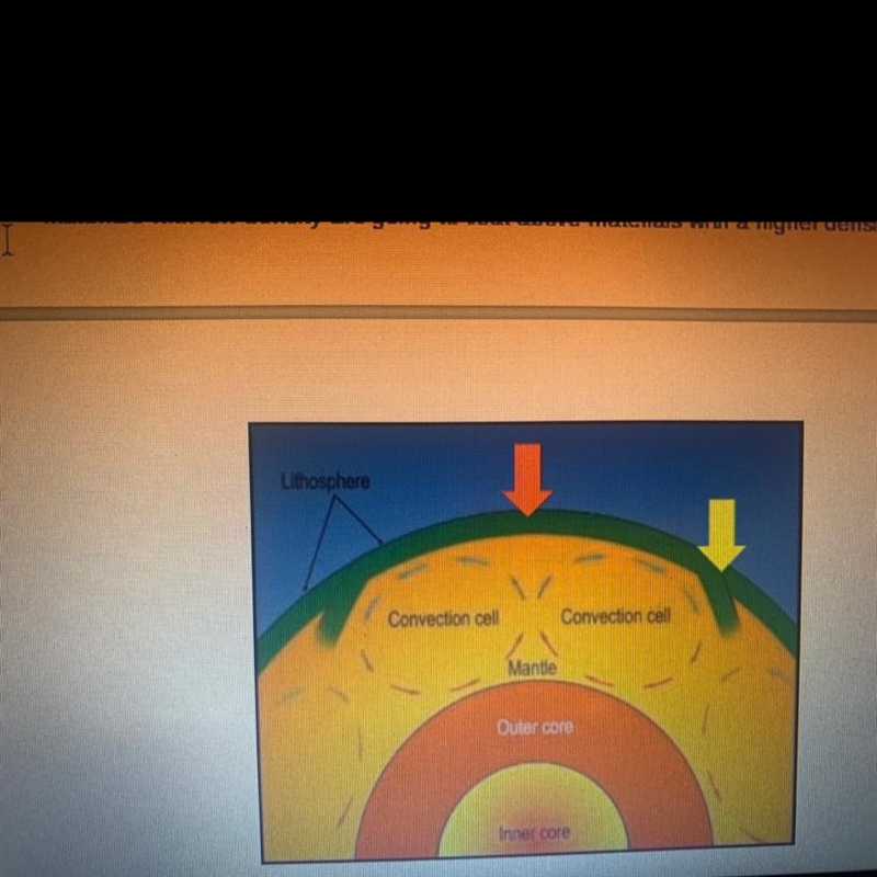 5. A) What is the cause of Tectonic Plate movement? B) Would a Convergent or Divergent Boundary be formed at the Red Arrow? C) Would a Convergent or Divergent Boundary be formed at the Yellow Arrow? D) Why do you think this?