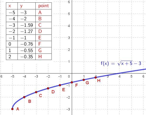 The point (x,y) = (-5,-3) is on the square root graph.