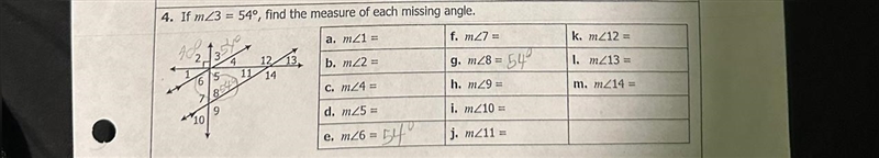 (M). Angles 11 and 14 are also supplementary. m∠14 = 180° - 36°