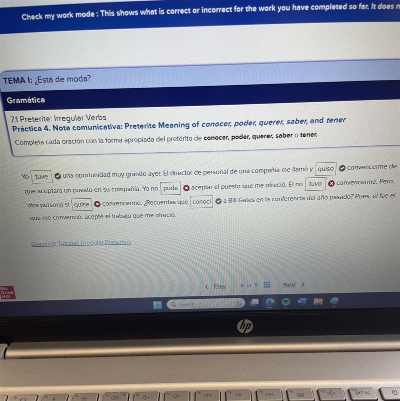 What are the correct preterite verbs and conjugations? I also tried tuve, sabía, and sabía