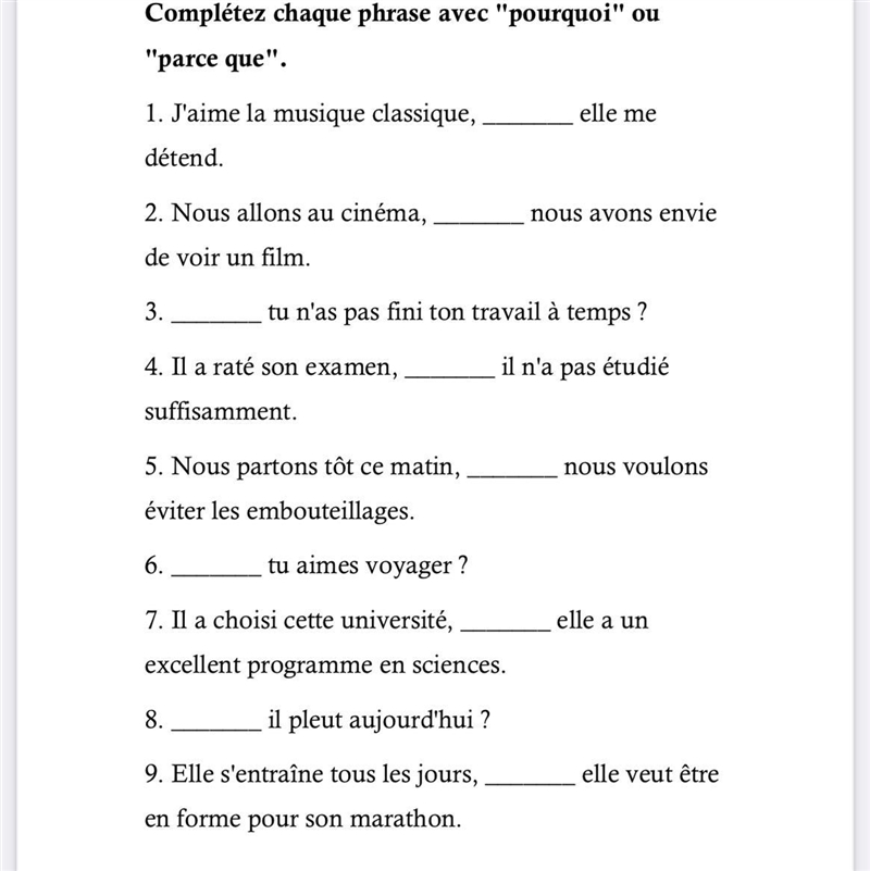 5. Nous partons tôt ce matin, parce que nous voulons éviter les embouteillages.
