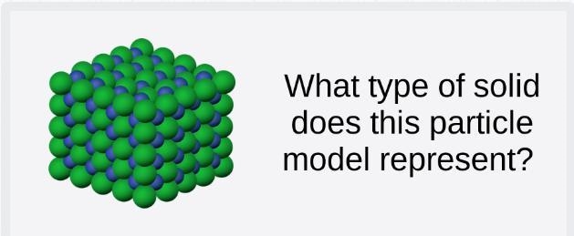 What type of solid does this particle model represent? A) Molecular B) Network C) Ionic D) Metallic