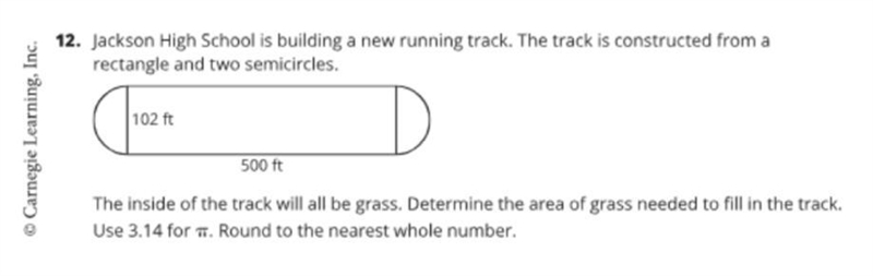 area covered by grass = area of rectangle + area of 2 semi-circles