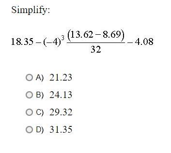 HELP ASAP! A. 21.23 B. 24.13 C. 29.32 D. 31.35