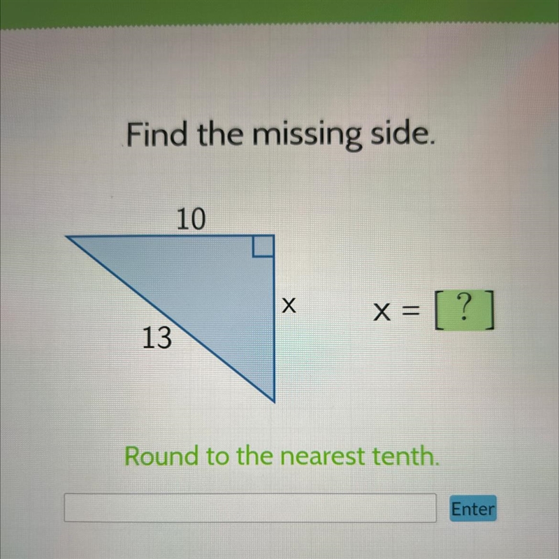 Thus, we can substitute 10 for a and 13 for c to find b, which is the same as x:
