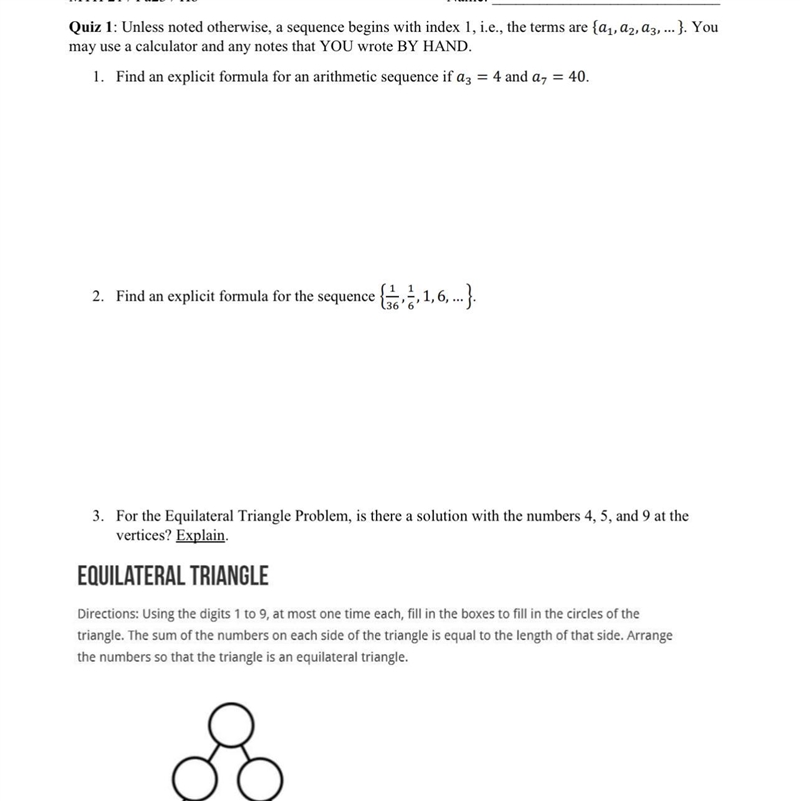 1. The explicit formula for the arithmetic sequence is aₙ = 6n - 14.