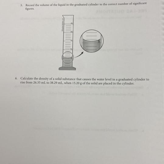 D= 15.20 g/(38.29 mL-26.35 mL)= 1.273 g/mL