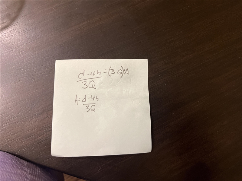 Step-by-step explanation:because of the spacing I think “3Q” is a separate term so it is divisible to directly get A alone.If not let me know what the automated answer says