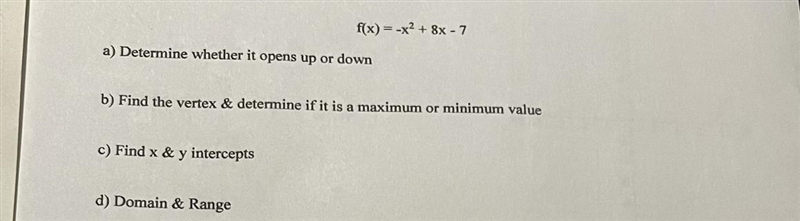 x-intercepts are (7,0) or (1,0)