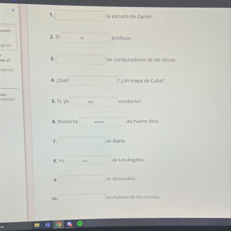 Fill in the forms of ser