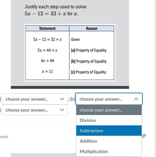 In (b), x was subtracted from both using the Subtraction Property of Equality: