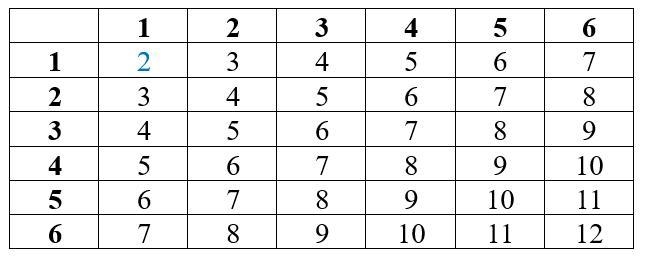 This table shows each outcome of rolling two six-sided dice. Hope this helps!