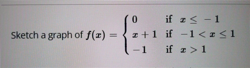 The first part given is that when x is less than or greater to -1, y equals 0. We can show this with a line along the x-axis from -1 leftwards. Since the first and second part overlap, I didn't draw a visible circle here.