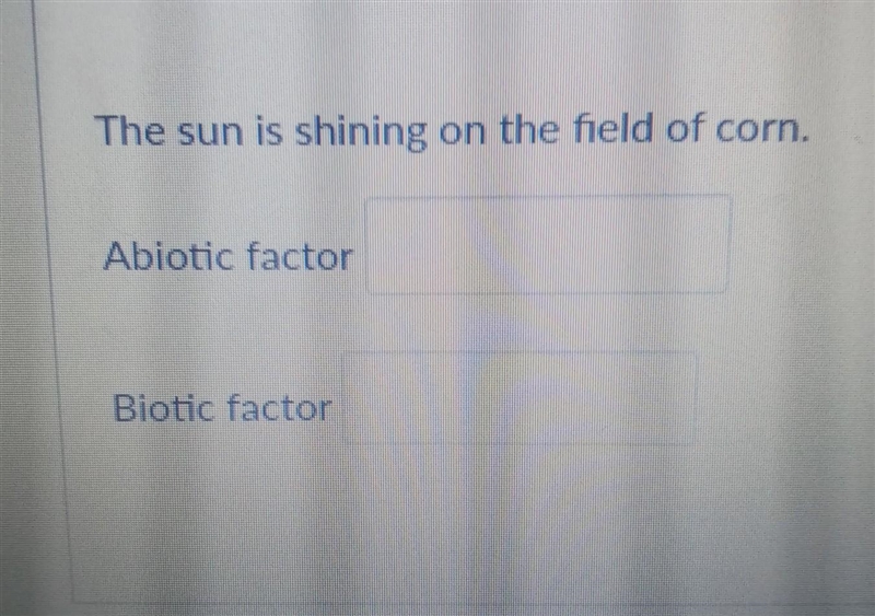 The sun is shining on the field of corn. Abiotic factor Biotic factor