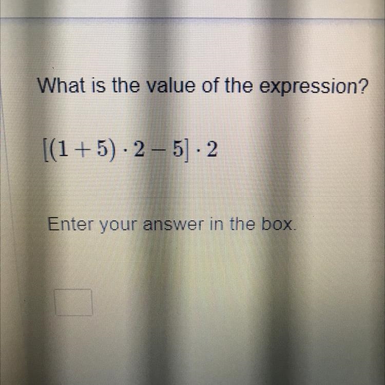The value of the expression [(1 + 5) • 2 - 5] • 2 is **14**. Here is how I calculated it: