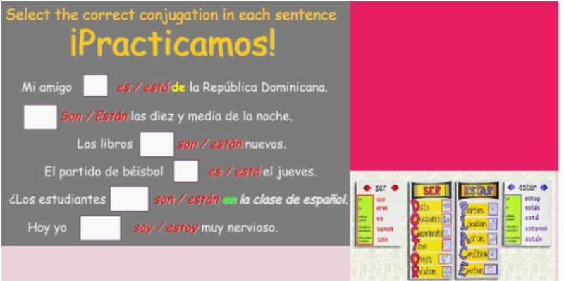 5. The sentence "Los estudiantes (están) en la clase de español" is correct. In this sentence, the verb "están" is used to indicate the location of the subject. Here, it is stating that the students are in the Spanish class. So, the correct translation would be "The students are in the Spanish class."