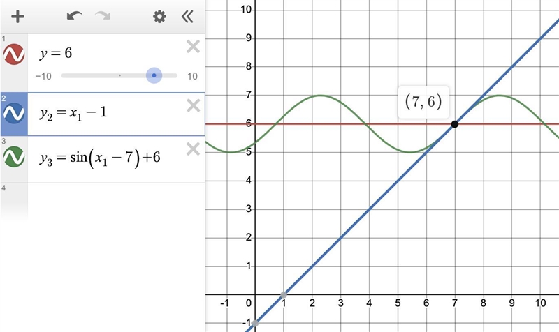 f(x) = sin(x -7) +6